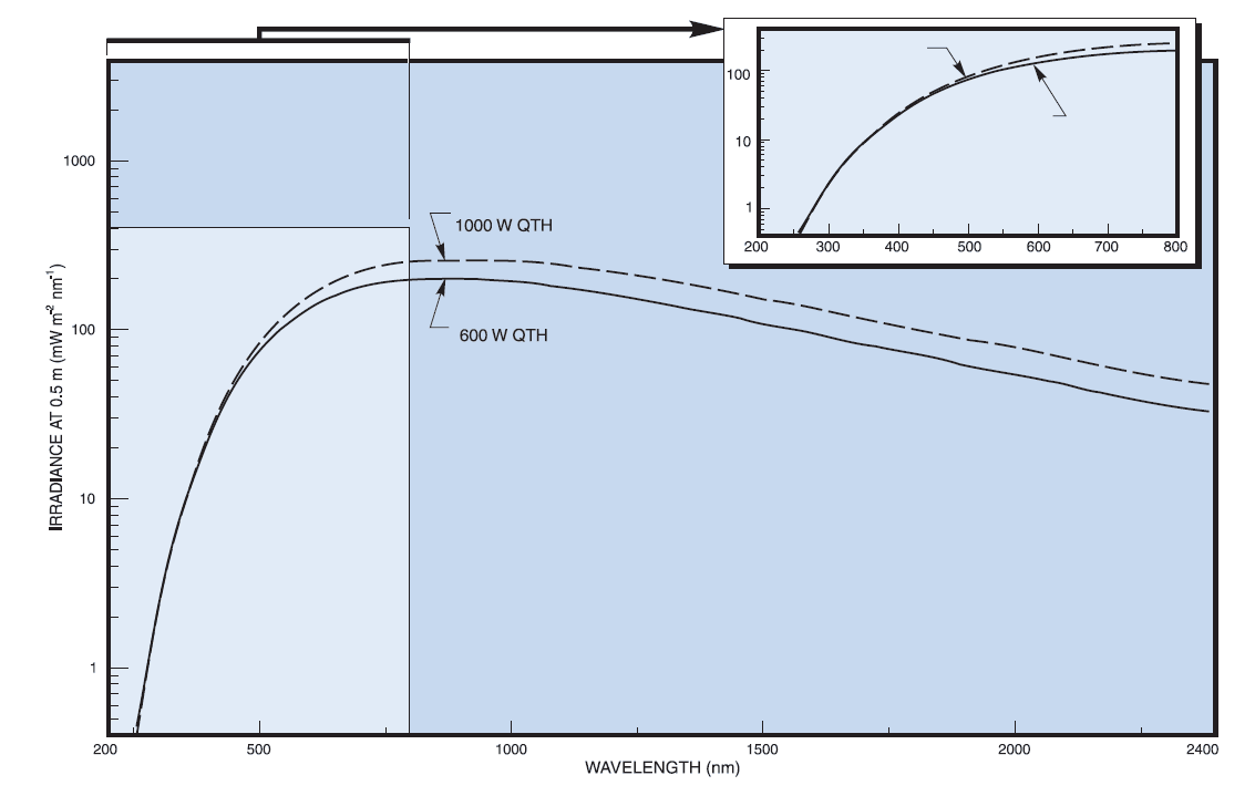 1000W鹵鎢燈光源CME-Q1000具有高強度的可見光和近紅外光輸出,比孤光燈更穩定,不會(hui) 產(chan) 生強烈的紫外光,光譜比較平滑波動比較小,也不會(hui) 產(chan) 生有毒的臭氧,適用各種光學檢測,可用作輻照度標準,是校準光度計、測光表、分光光度計或類似光測量設備的理想選擇。