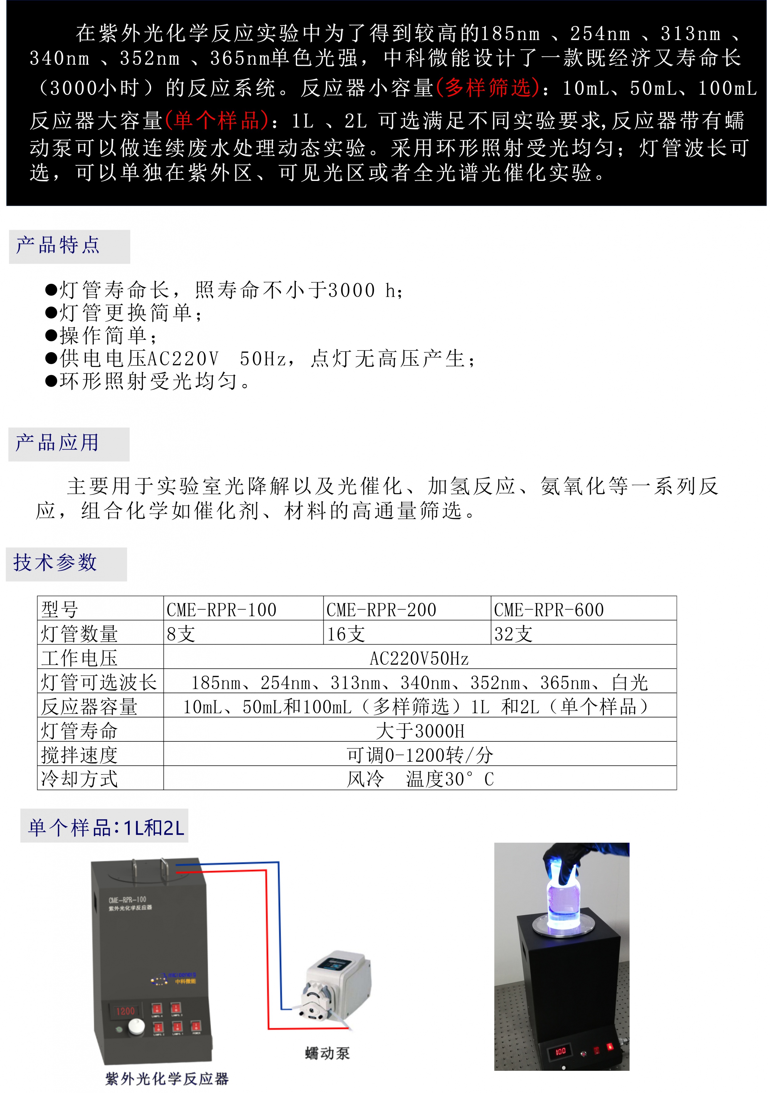 主要用於(yu) 實驗室光降解以及光催化、加氫反應、氨氧化等一係列反應,組合化學如催化劑、材料的高通量篩選。反應器 小容量:10mL、50mL、100mL 大容量:1L 、2L 可選滿足不同實驗要求。