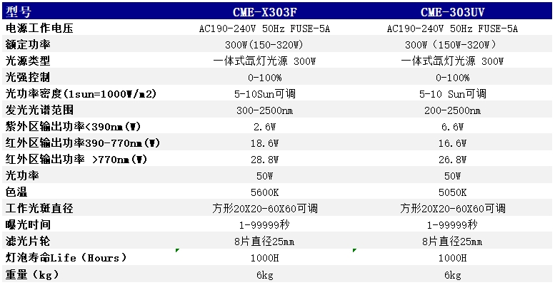 光纖氙燈光源CME-303太陽光模擬器采用進口燈泡一體(ti) 化設計安裝操作簡單,便於(yu) 攜帶。光譜範圍從(cong) UV-VIS-IR(200-2500nm和300-2500nm可選),電動濾光輪配合濾光片自動輸出:模擬太陽光AM1.5G標準光譜,紫外區、可見區、近紅外區及單色光等。