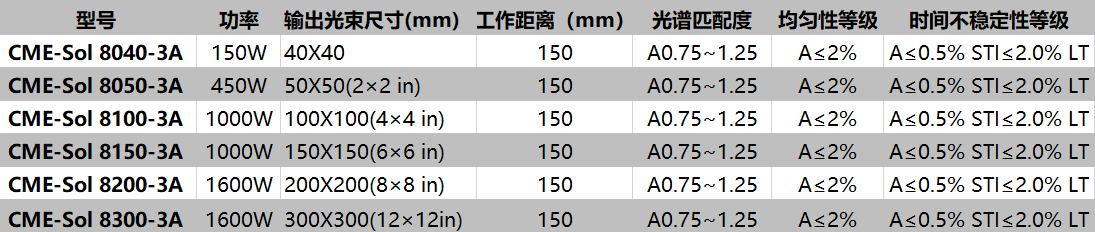 4. 光照匹配度、輻照空間均勻性、時間不穩定性符合國際三大標準:JIS C 8912, ASTM E927-05, IEC 60904-9 2007 Ed2: