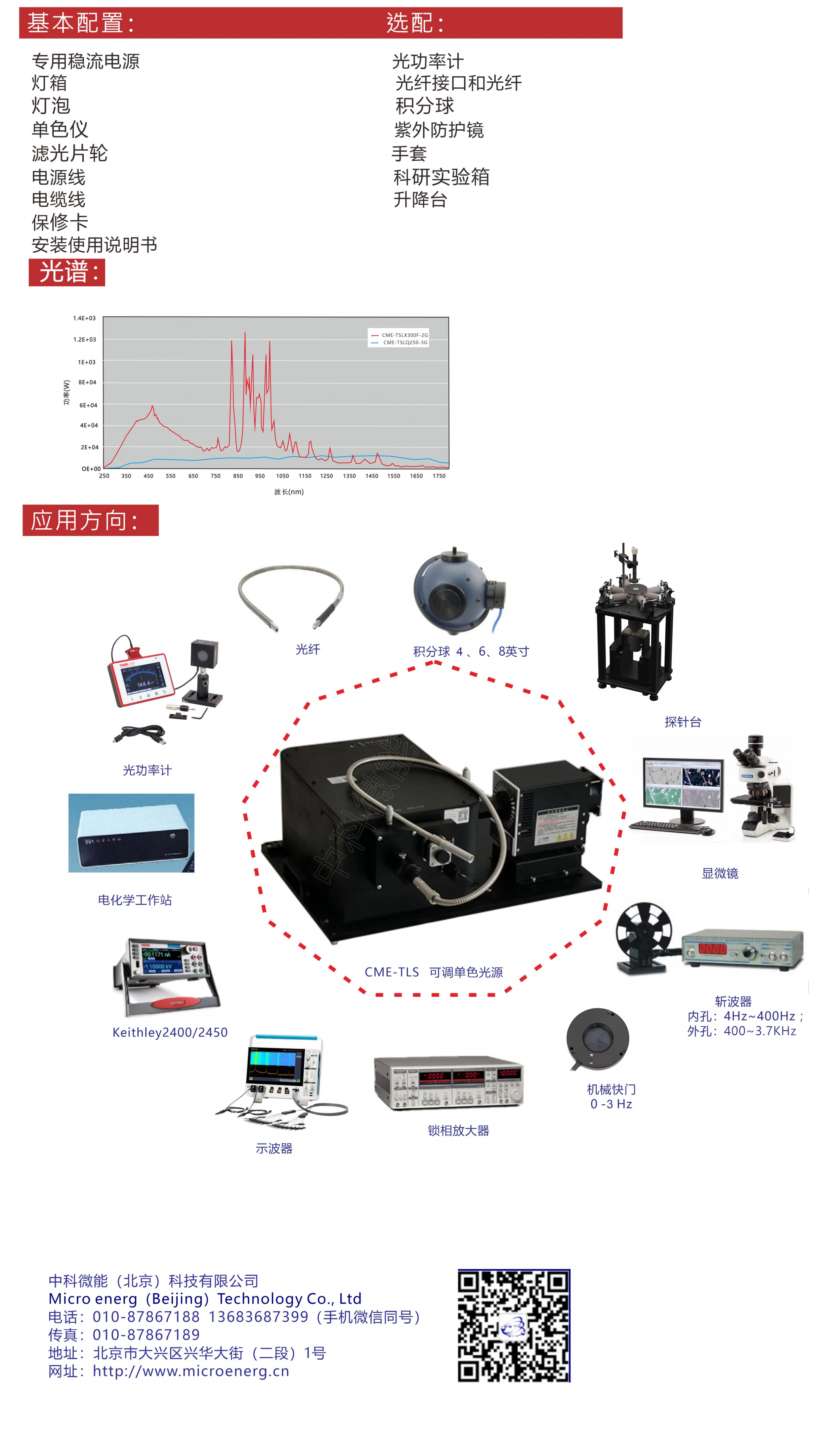 可調波長氙燈光源模塊化設計集成靈活性為(wei) 客戶量身打造,係統由氘燈、鎢燈或氙燈光源搭配ME-MO係列單色儀(yi) ,配合濾光片輪(消除多級光譜)、光纖、快門、積分球、電化學工作站、SR540斬波器等附件,組合成波長可調單色光源係統。
